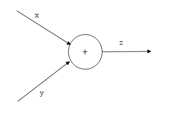 z = x + y 라는 식을 대상으로 역전파를 살펴 보자. x에 대한 z의 미분 = 1, y에 대한 z의 미분 = 1이다.