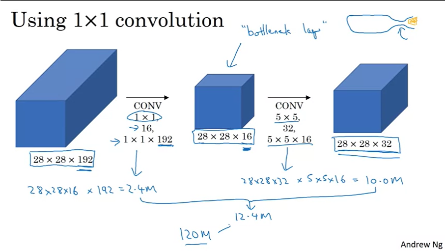 -> 28*28*192에 5*5*192의 filter를 통과시킬 경우 1억 2천이라는 cost가 발생하게 됨 : 너무 비싼 작업