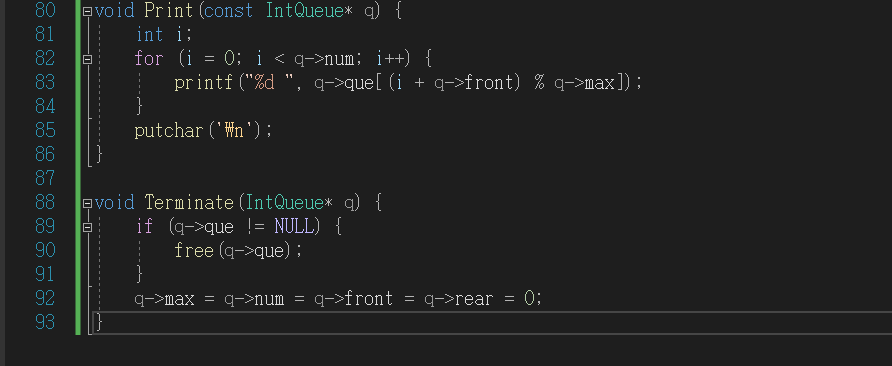 12. Terminate : 메모리 공간에 할당한 배열(큐)을 해제하는 함수.