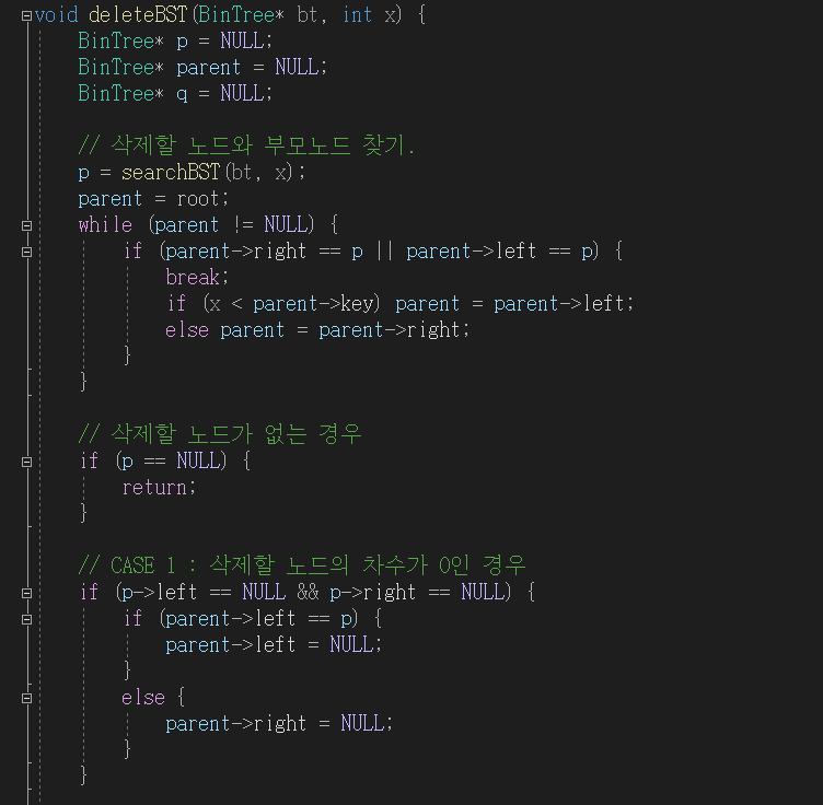 - 삭제할 노드의 차수에 따른 경우의 수가 다름